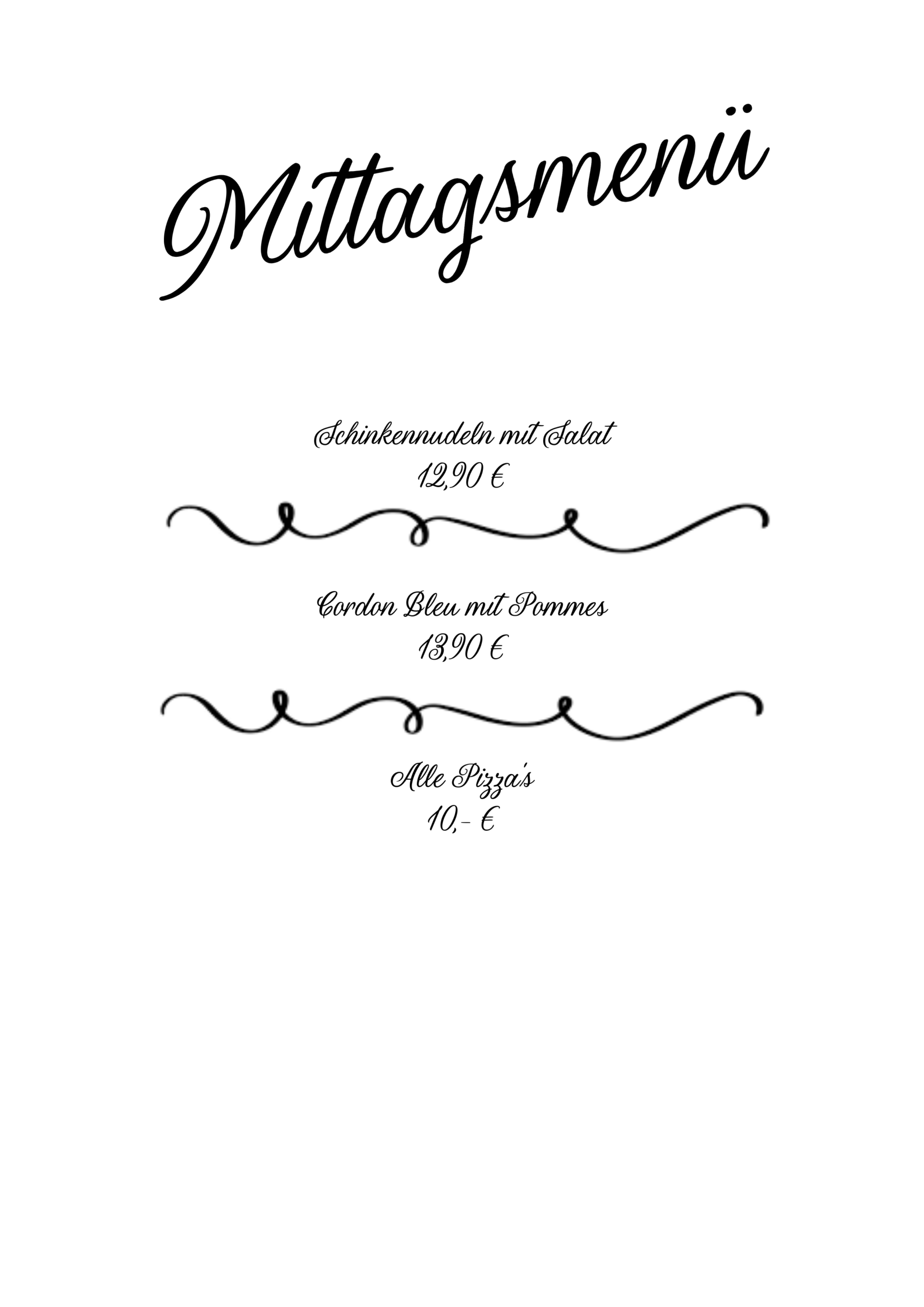 (Tomatensoße, Mozzarella, Champignons, Vorderschinken, Peperoni, Oliven und Artischocken)Quattro Formaggi 13,90 €